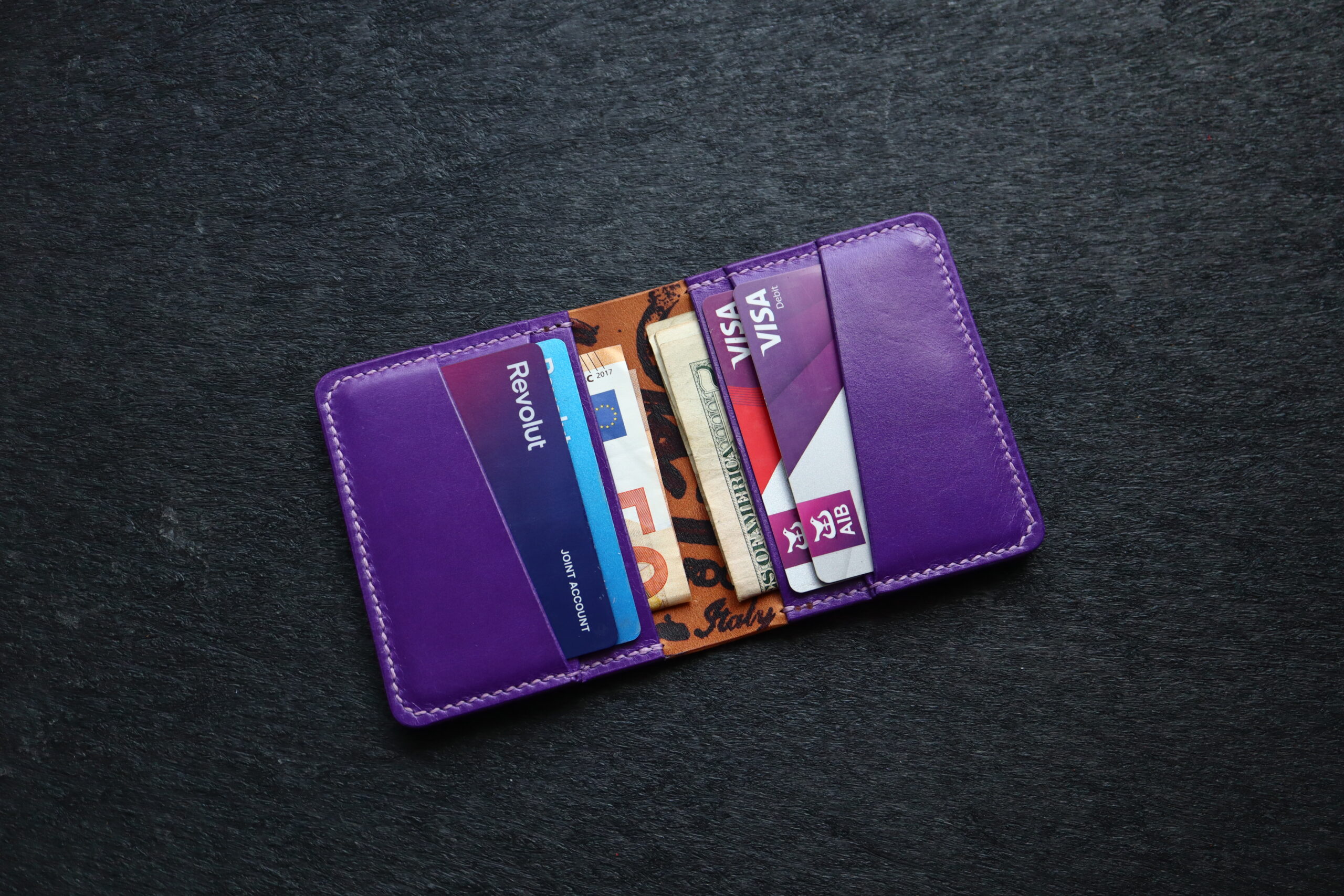 1 – What Leather Type/Color, and what are the combinations you would like – the external leather and the inside card pockets.