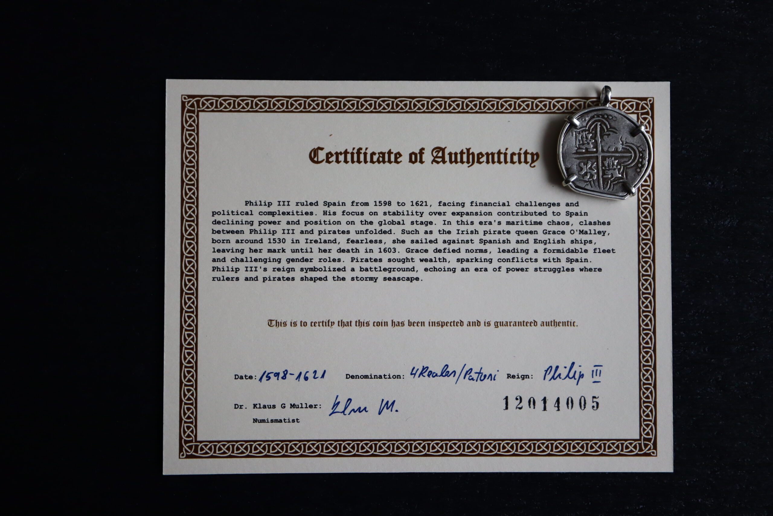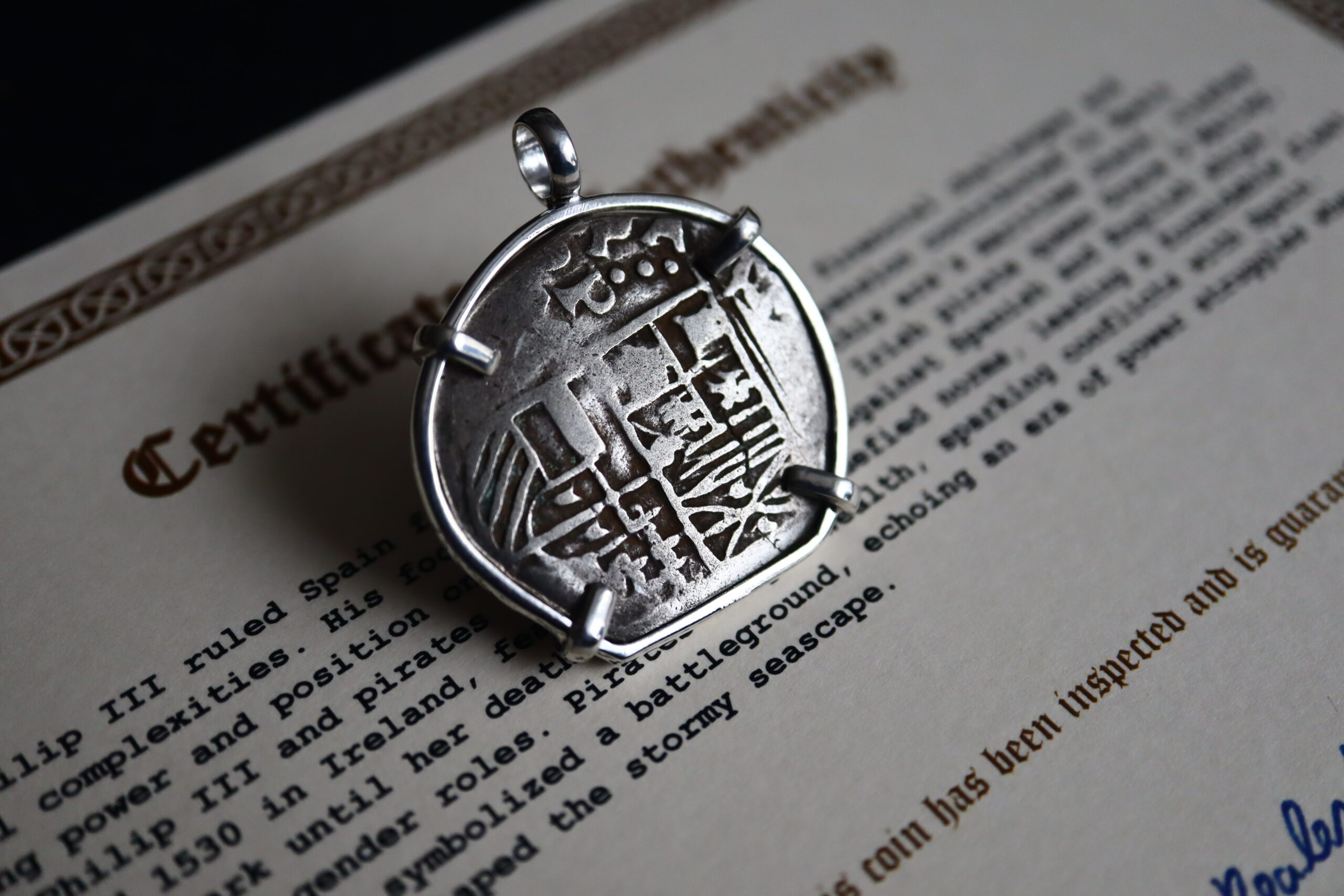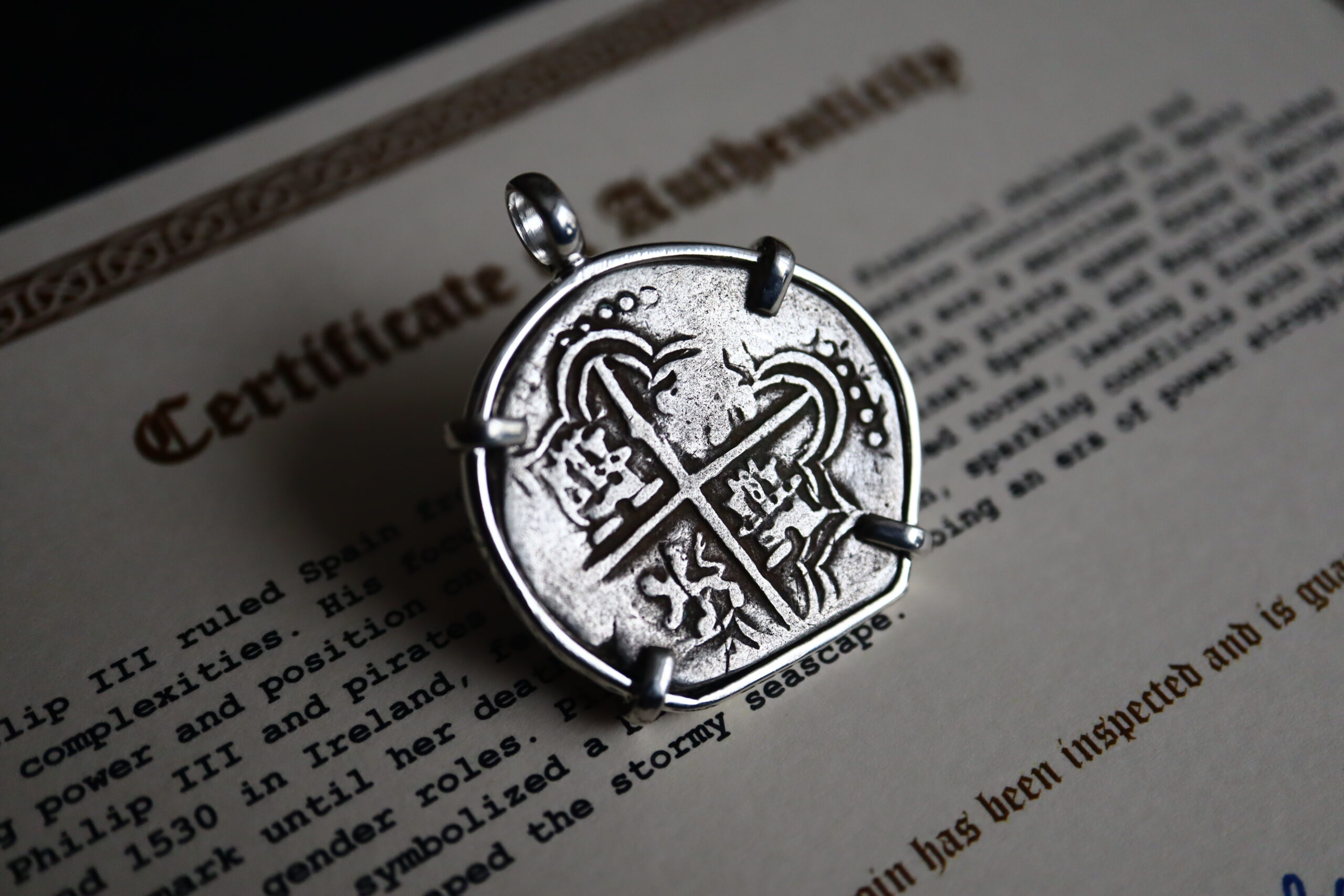 Authentic Pirate Silver Pendant 1598-1621 – 4 Reales / Patosi – Philip III of Spain.