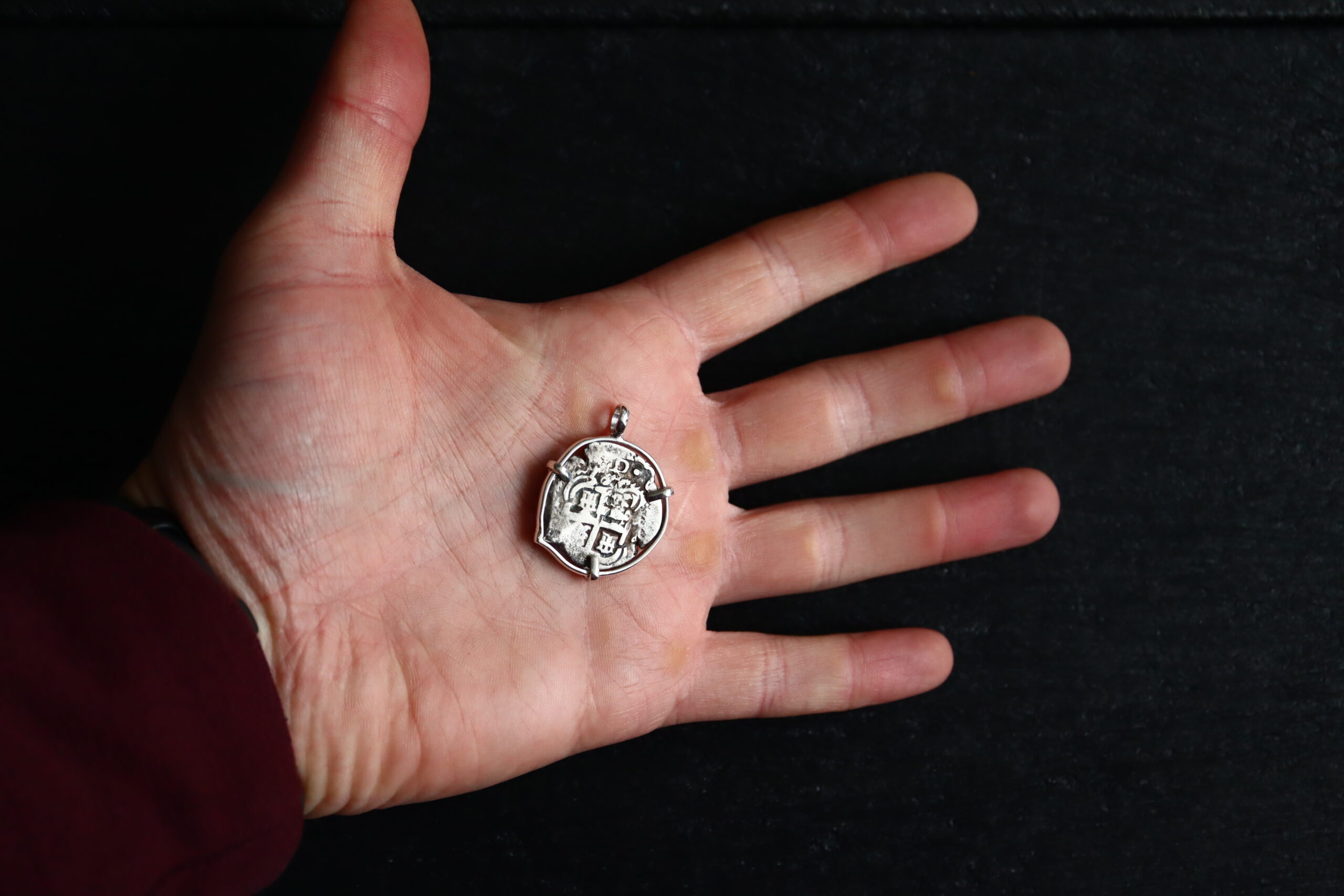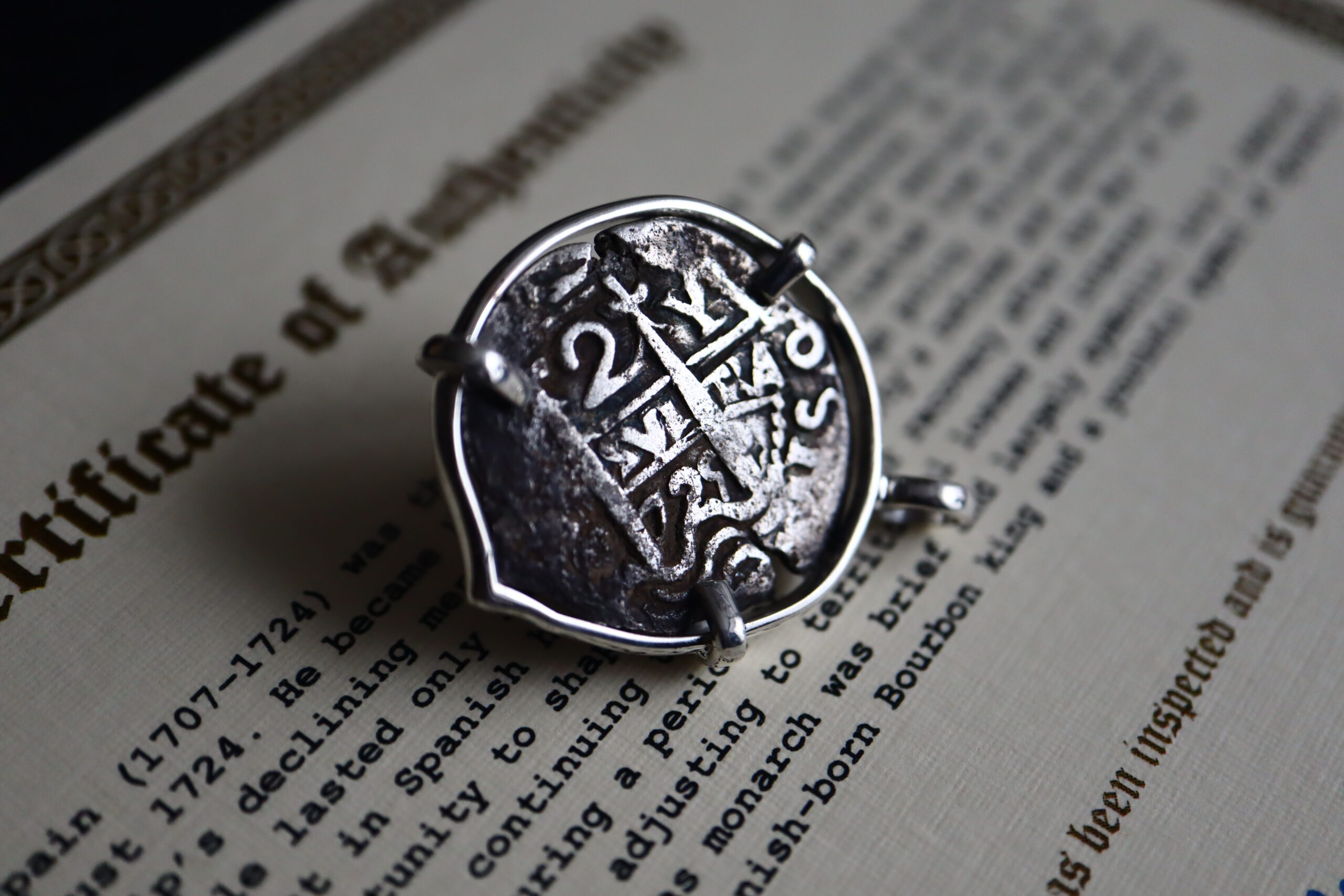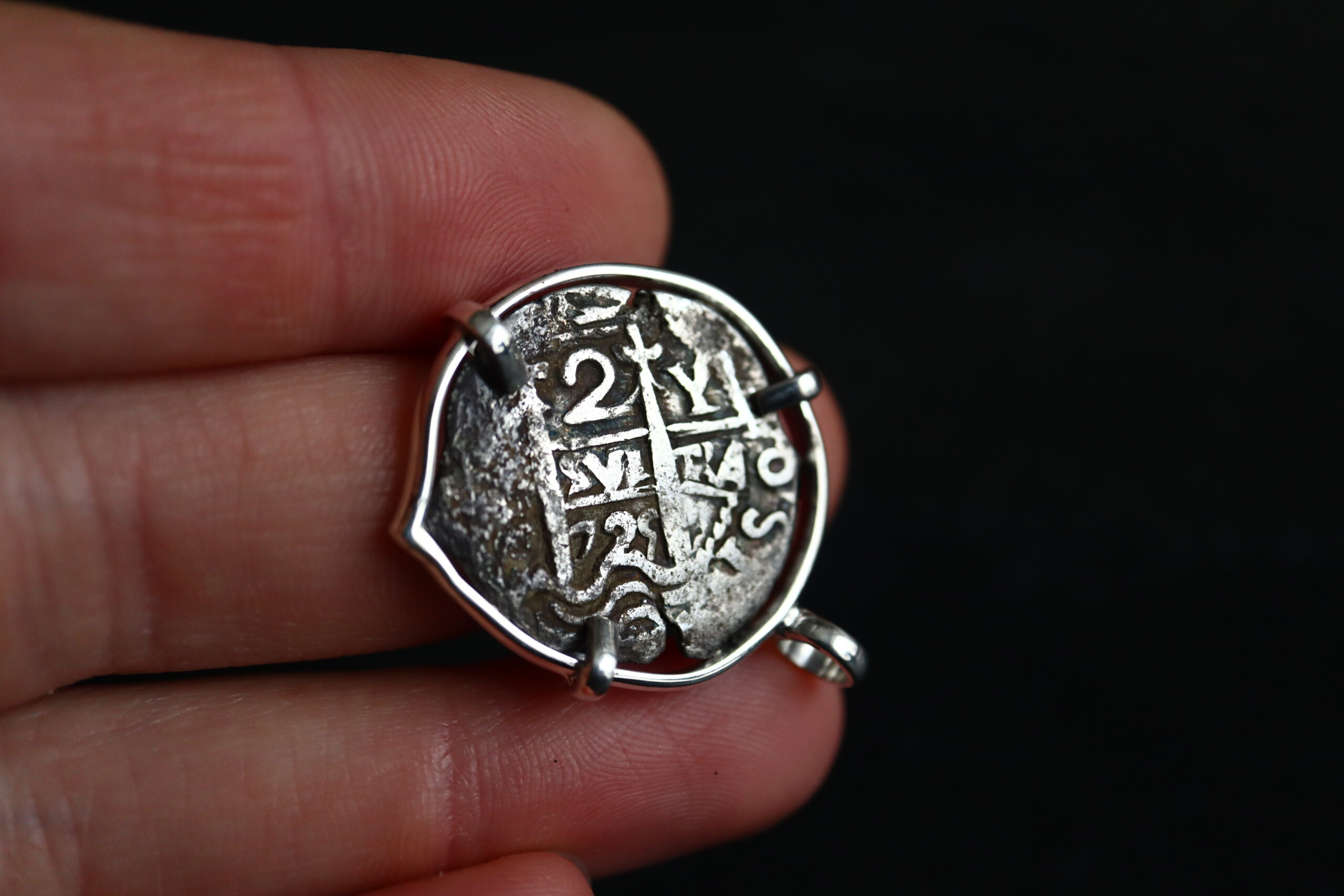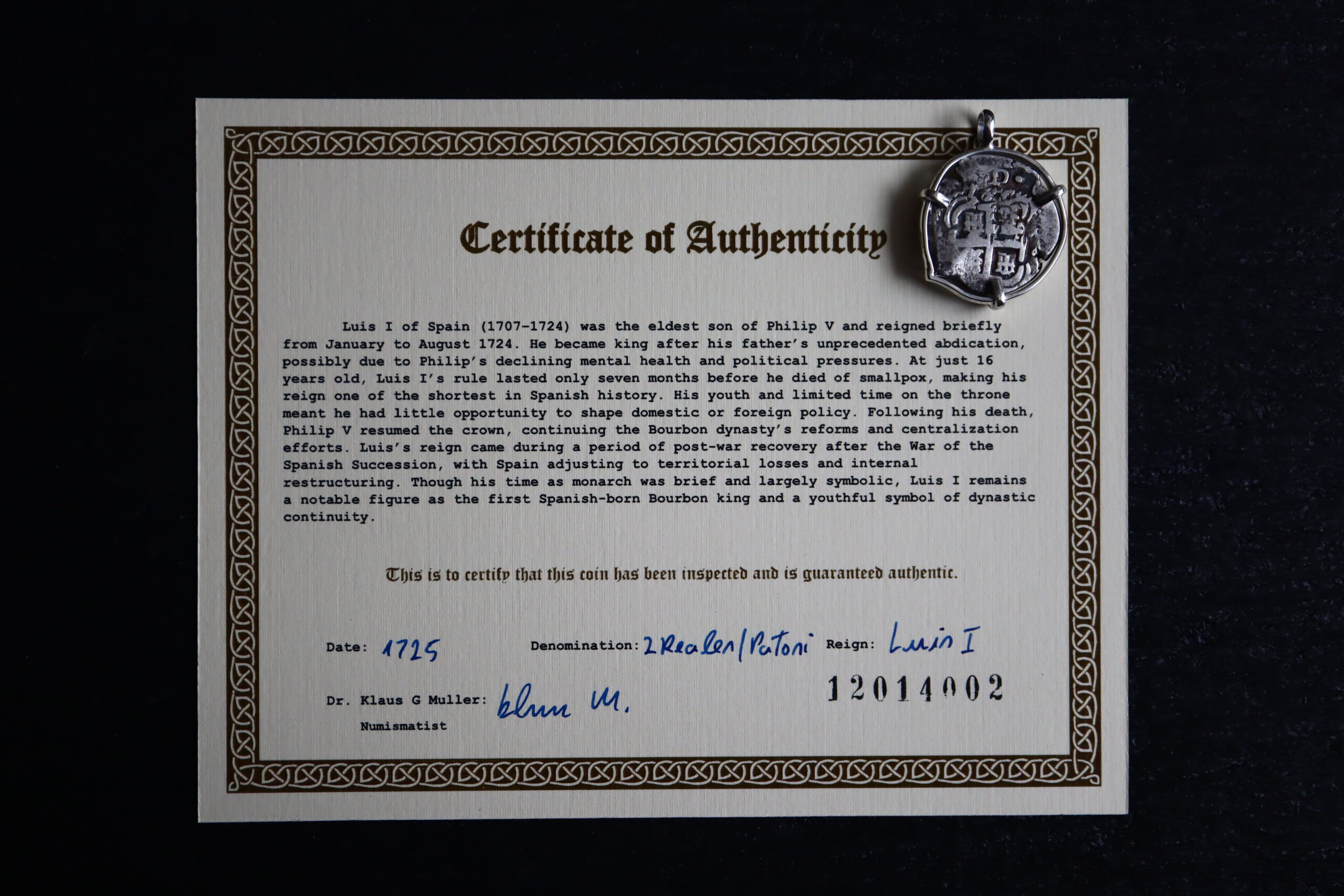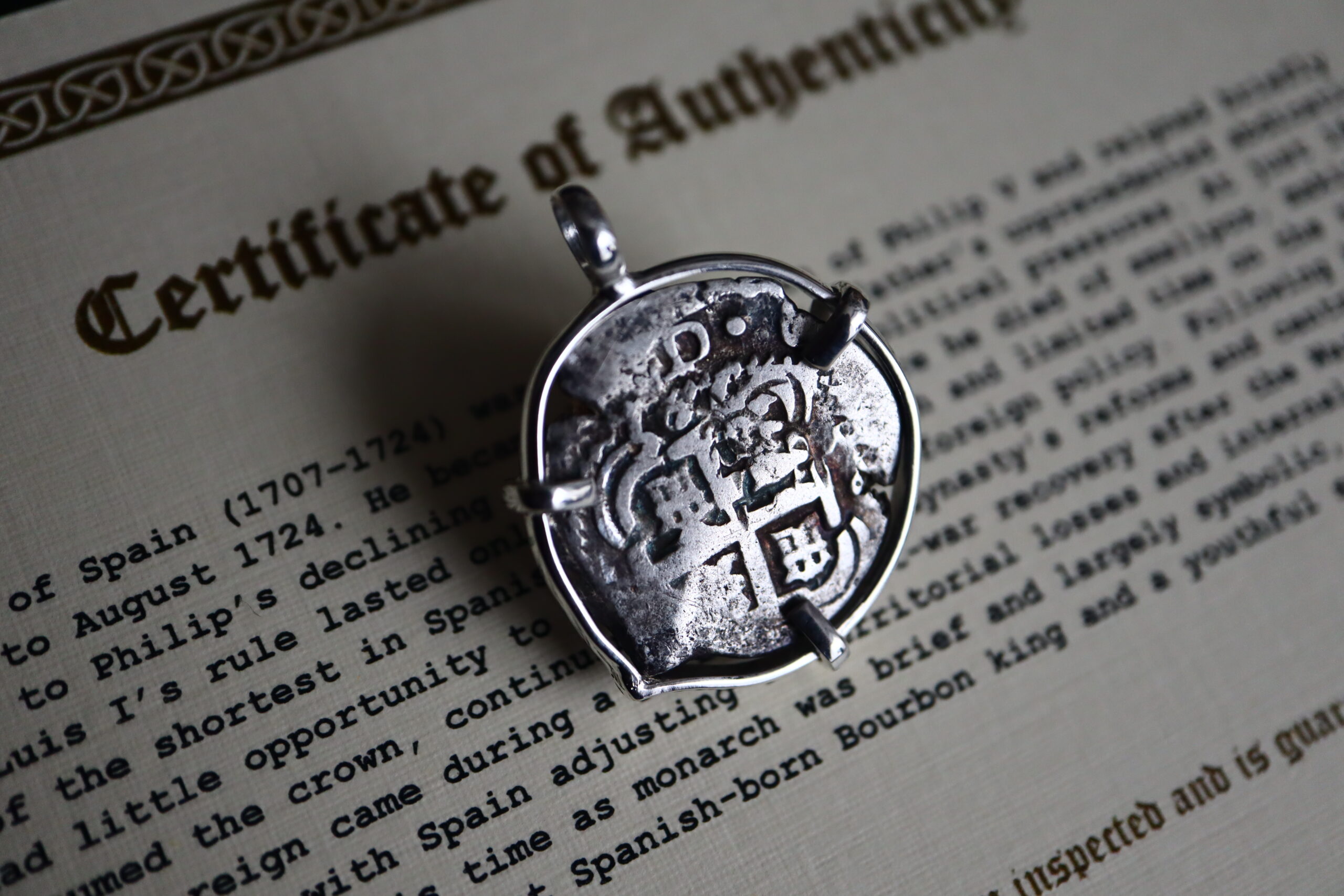 Authentic Pirate Silver Pendant 1725 – 2 Reale / Patosi – Luis I of Spain.